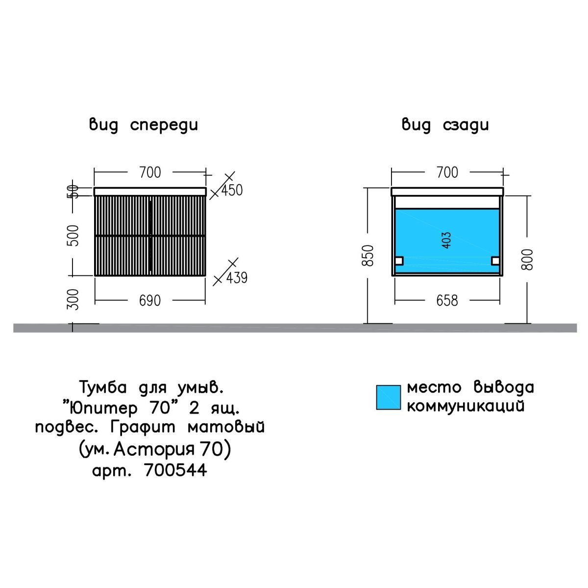 —Тумба под раковину СанТа Юпитер 700544 70х40 подвесная цвет серый