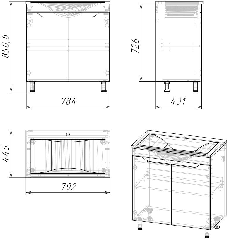 —Тумба под раковину Stella Polar Абигель SP-00001080 80х40 напольная цвет серый