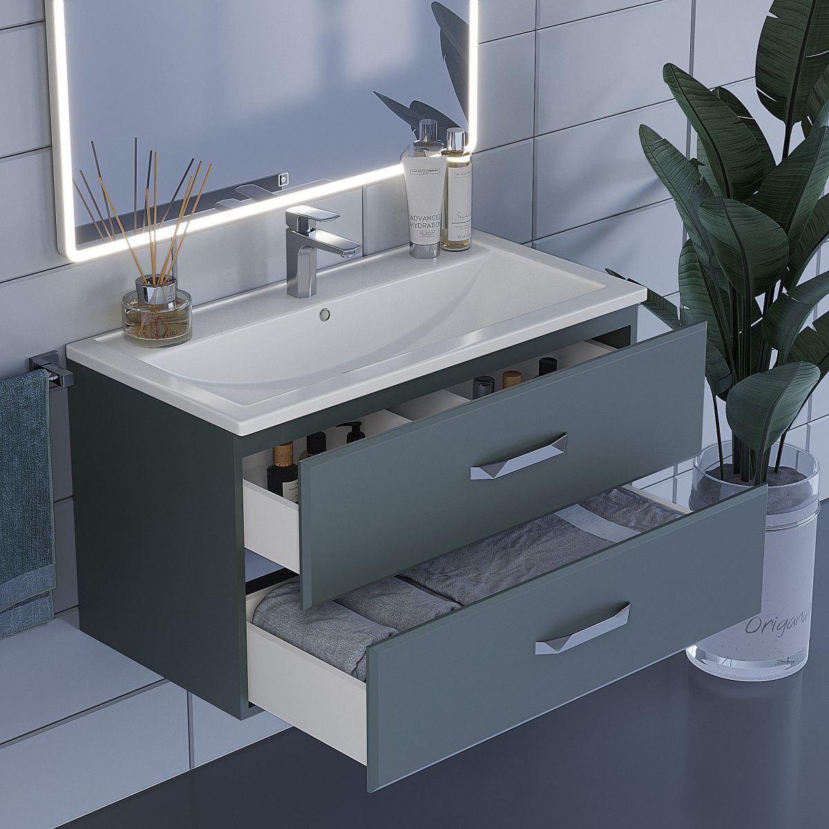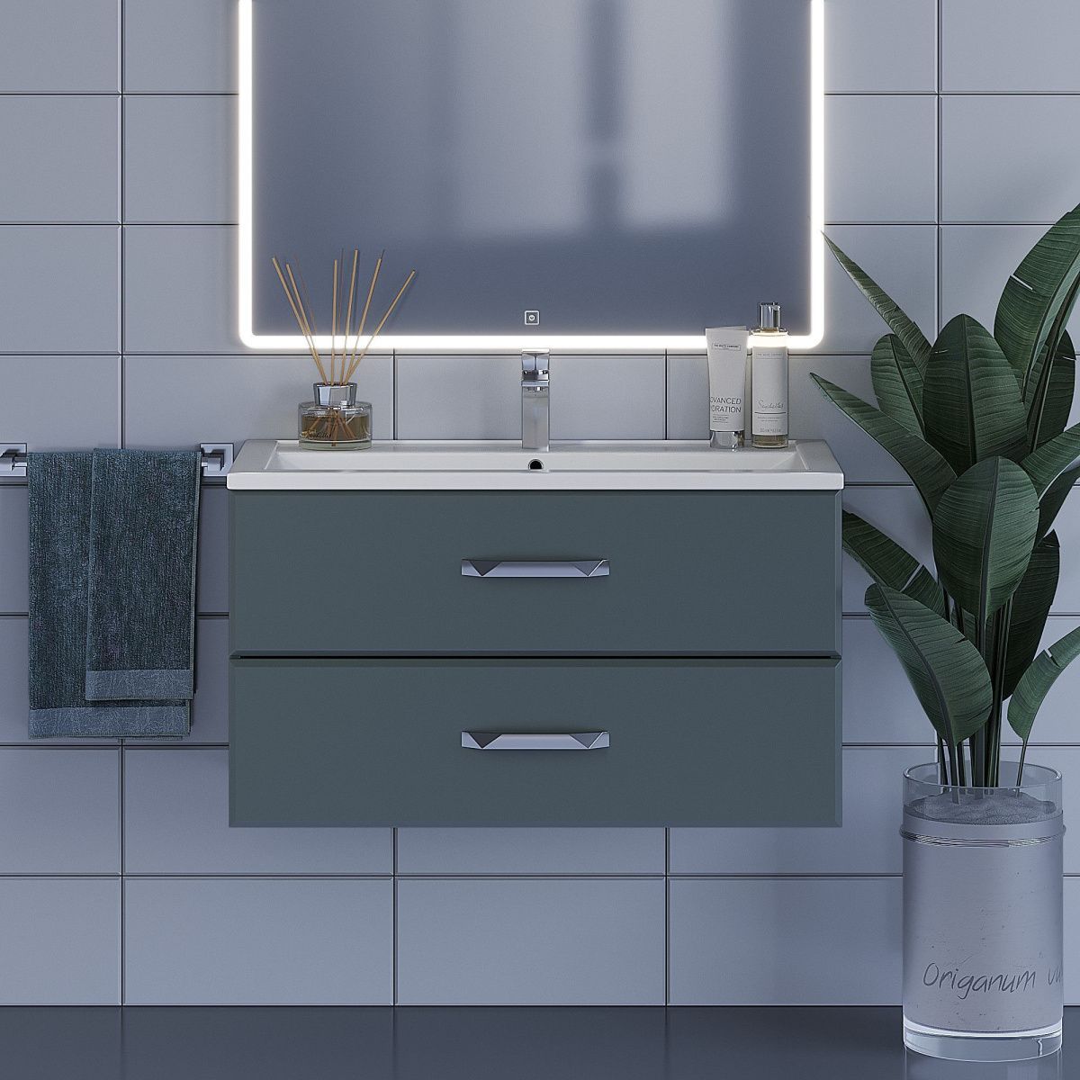 Тумба под раковину Uperwood Foster 291020523 90х50 подвесная цвет серый