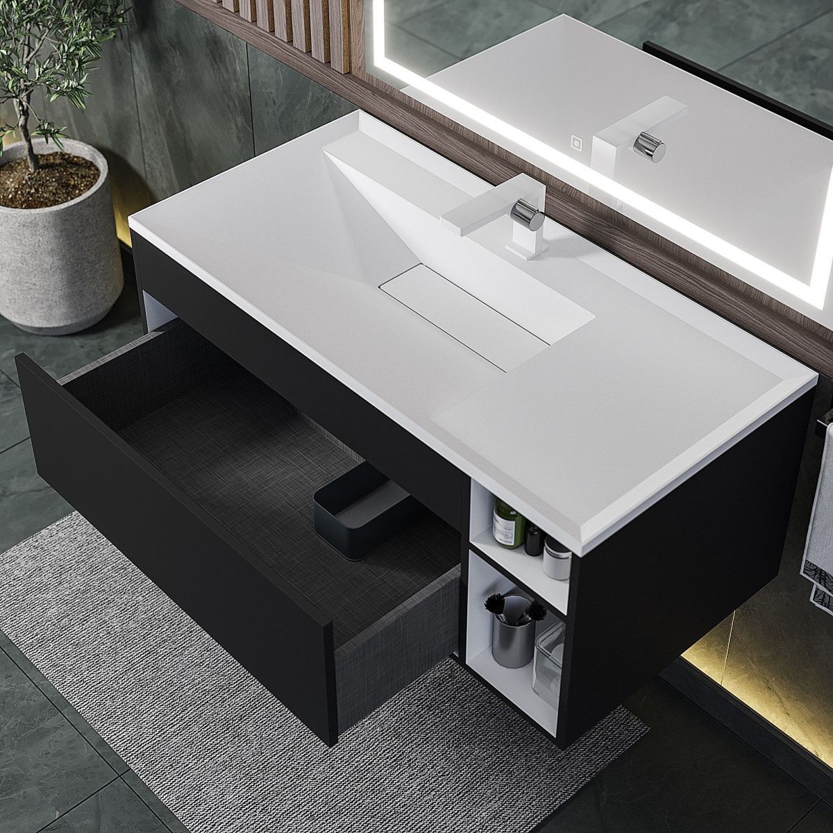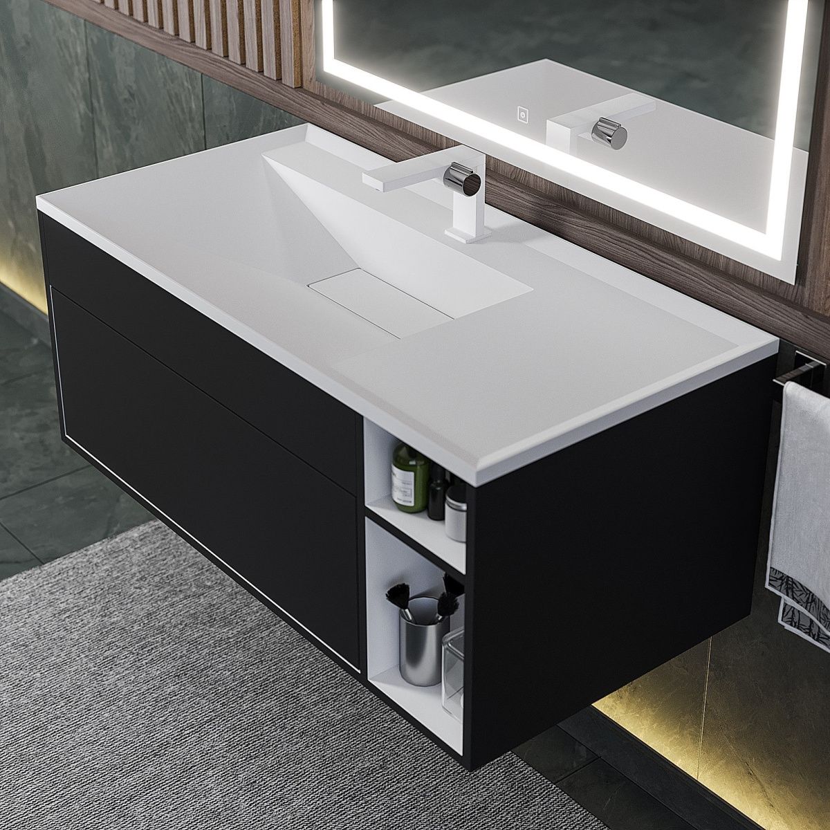—Тумба под раковину Uperwood Lotus 39340205464 100х50 подвесная цвет черный