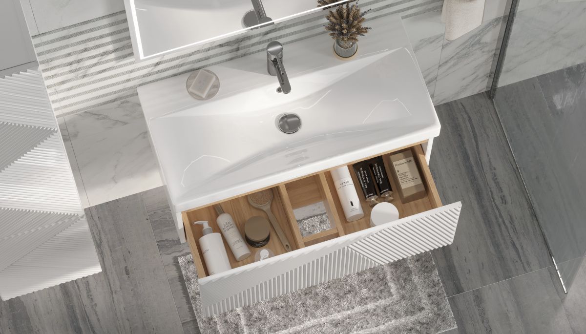 —Тумба под раковину Velvex EDGE tn.EDG.9696.80.2Y белый глянец 80х40 напольная цвет белый