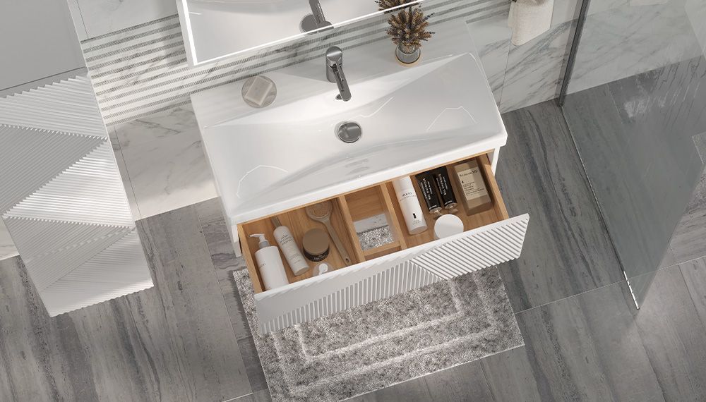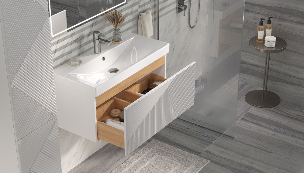 —Тумба под раковину Velvex EDGE tp.EDG.9696.80.1Y белый глянец 80х40 подвесная цвет серый