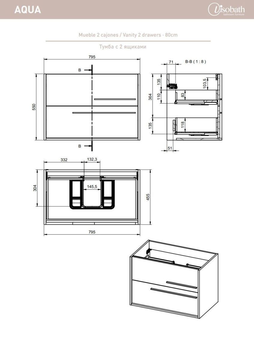 Тумба под раковину Visobath Aqua 73559/73582 80х50 подвесная цвет серый