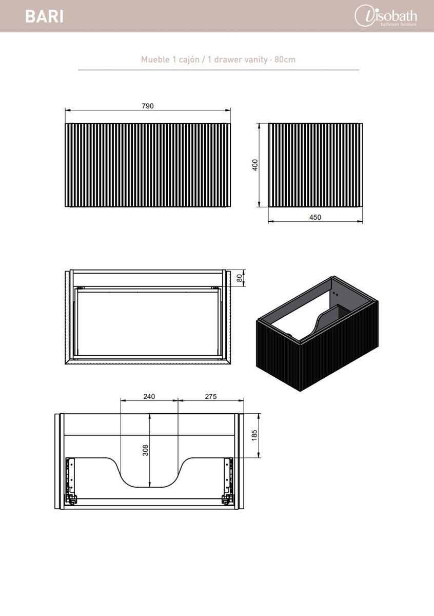 Тумба под раковину Visobath Bari 87249/Navy 80х50 подвесная цвет синий