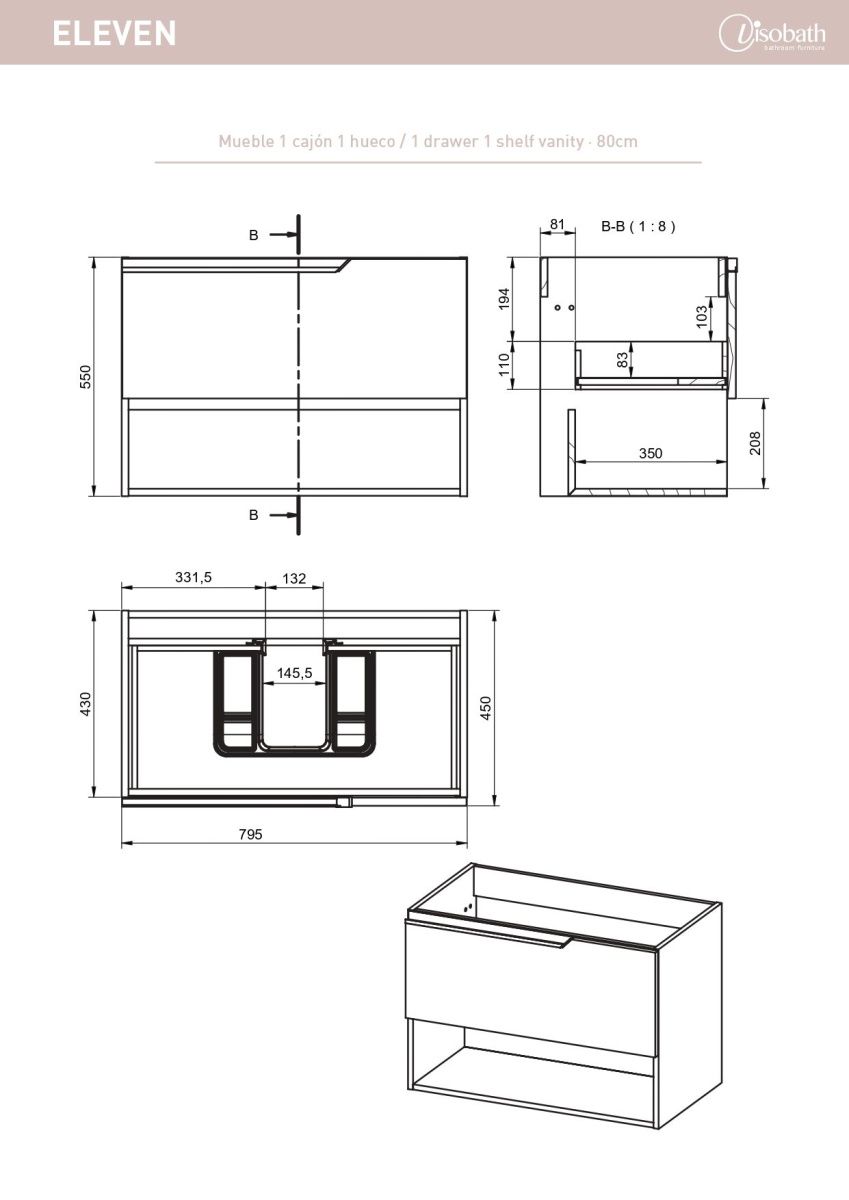 Тумба под раковину Visobath Eleven 85601/B-Ada 80х50 подвесная цвет белый