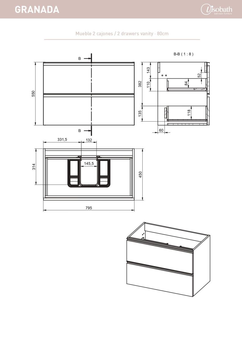 Тумба под раковину Visobath Granada 76579/87602 80х50 подвесная цвет коричневый