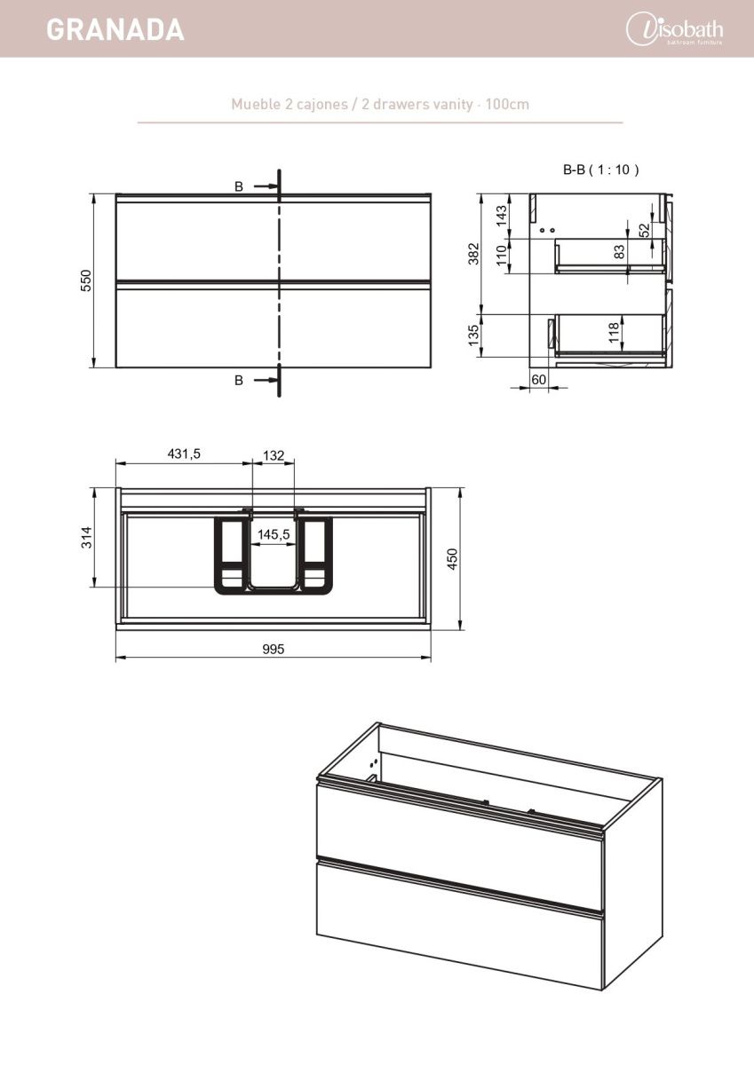 —Тумба под раковину Visobath Granada 76580/87605 100х50 подвесная цвет коричневый