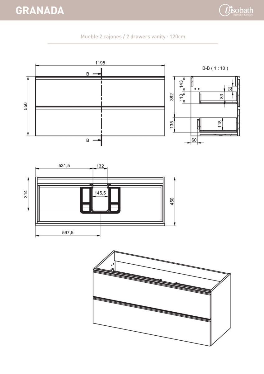 Тумба под раковину Visobath Granada 87543/73546 120х50 подвесная цвет белый
