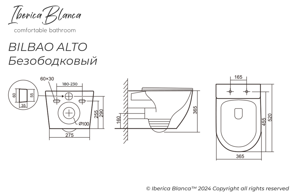 Унитаз Iberica Blanca представляет собой высококлассное решение для вашей ванной комнаты, олицетворяющее современный дизайн и функциональность премиум-сегмента. Подвесной унитаз с безободковой чашей и системой смыва Rimless выполнен из белого фарфора, который обжигается при температуре свыше 1000° С, что делает его невероятно прочным и долговечным.