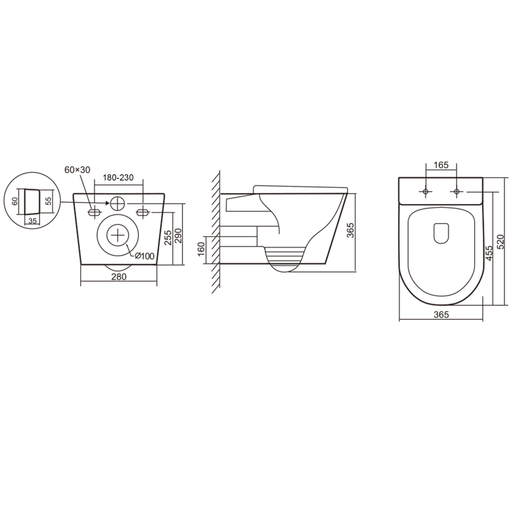Конструкция модели универсальна и сочетается с любыми инсталляциями для подвесного унитаза