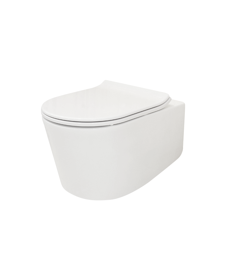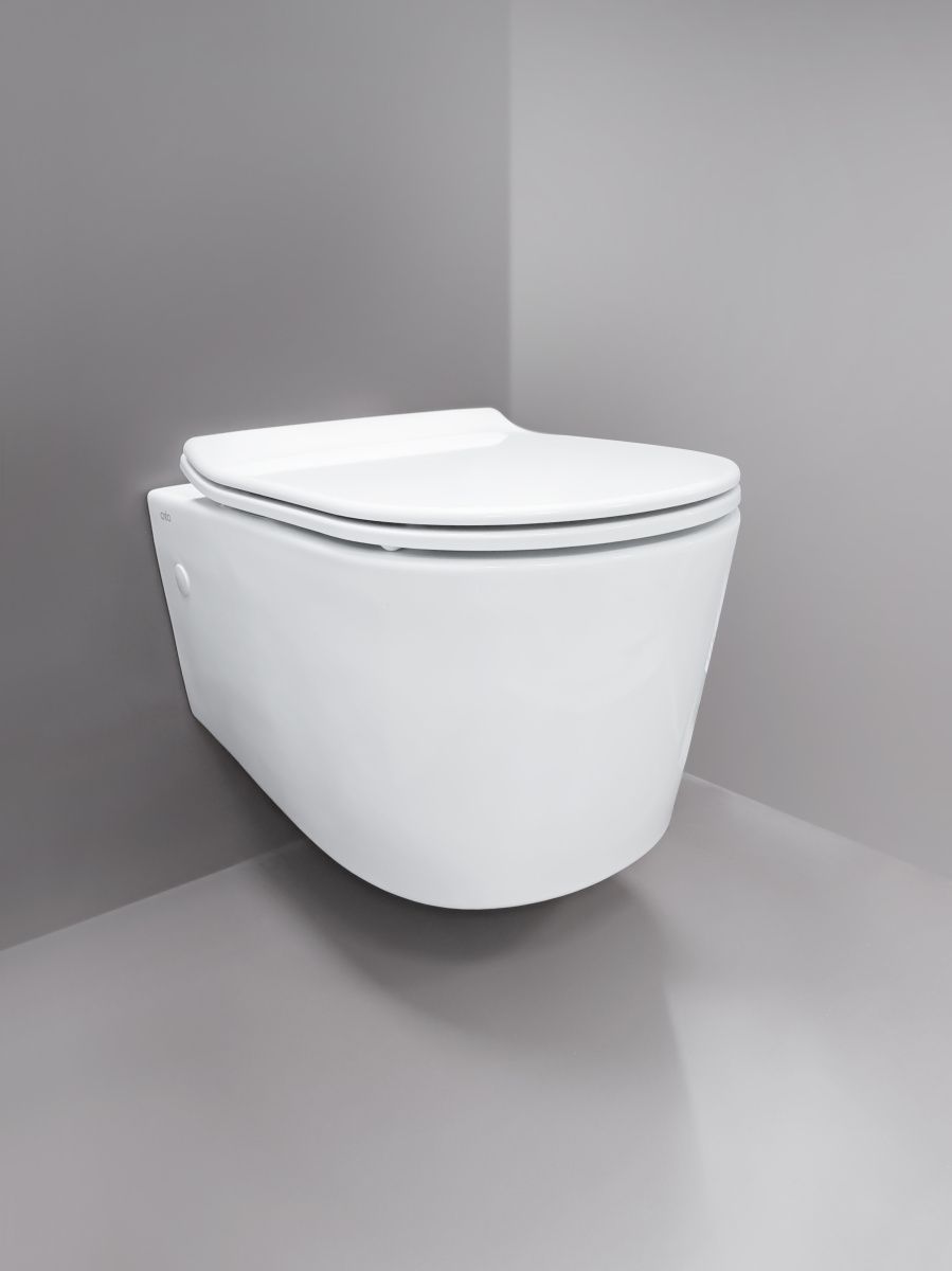 Безободковый подвесной керамический унитаз овальной формы с горизонтальным сливом.                                                                                                                                       Дюропластовое быстросъемное тонкое сидение с функцией soft-close. Сантехнический фарфор, покрытие Double Glaze, придающее исключительную гладкость и обеспечивающее гигиеничность на долгое время.Дюропластовое быстросъемное сидение с функцией soft-close. Современный ультратонкий дизайн. Крепление в комплекте.
