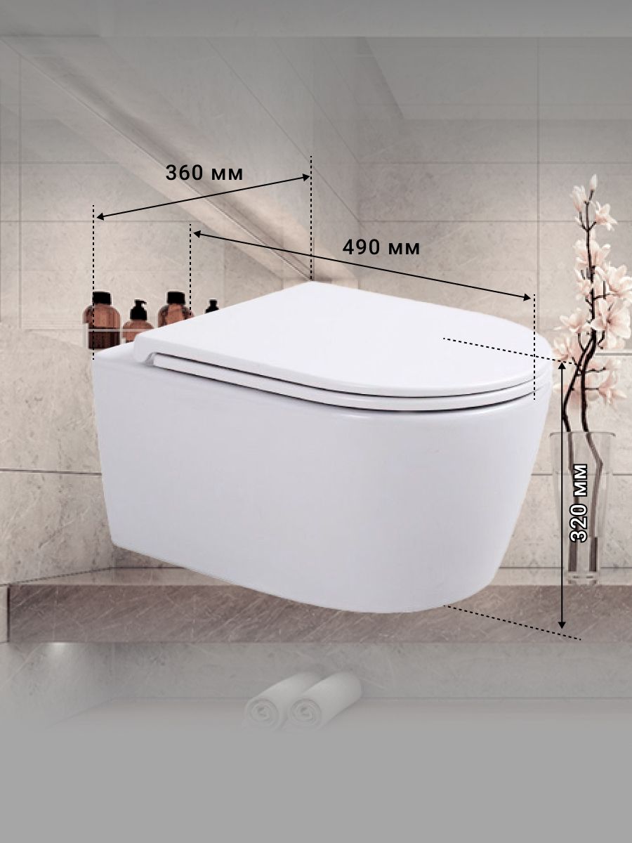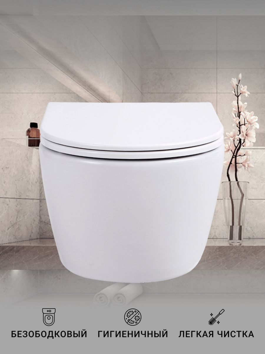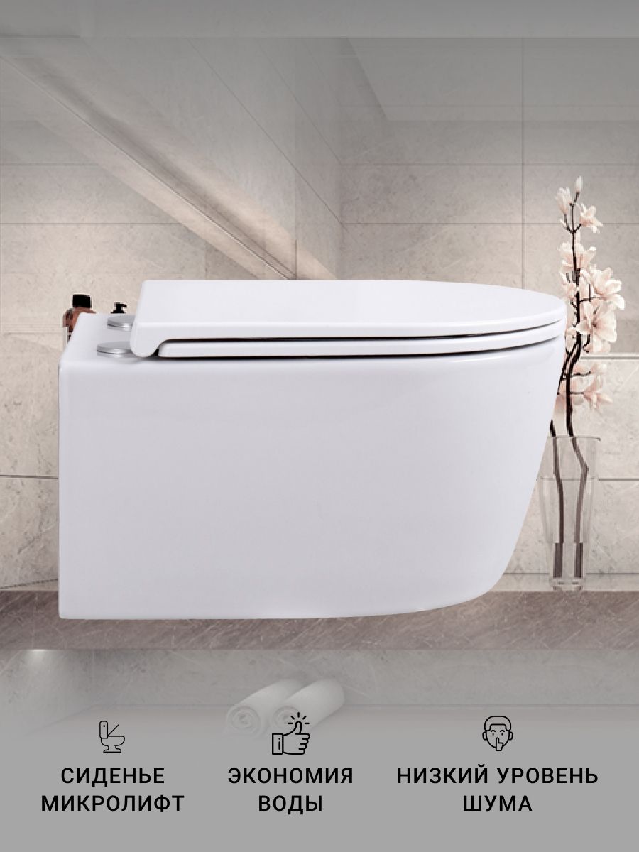 Если вы ищете идеальное сочетание стиля, удобства и гигиеничности для вашей ванной комнаты, тогда унитаз подвесной безободковый с крышкой-сиденьем из дюропласта с микролифтом – именно то, что вам нужно. Этот унитаз для инсталляции подвесной типа сочетает в себе современный дизайн и новейшие технологии, предоставляя пользователю максимум комфорта и простоты в уходе. Безободковая конструкция гарантирует лёгкость чистки и предотвращает накопление грязи, что способствует поддержанию высокого уровня гигиены. Крышка-сиденье из дюропласта не только долговечна и устойчива к царапинам, но и оснащена функцией микролифта, обеспечивающей плавное и тихое закрытие, что значительно продлевает её срок службы. Компактные размеры и стильный внешний вид делают этот подвесной унитаз идеальным для любых ванных комнат, независимо от их площади. Он идеально вписывается в современные интерьеры, добавляя нотку элегантности и придавая пространству ощущение лёгкости и простора. Унитазы подвесные, такие как этот, позволяют визуально увеличить пространство в комнате и упрощают уборку пола, так как унитаз крепится к стене и не имеет опоры на пол. В данном изделии частично отражены достижения таких брендов, как Grohe, известные своим качеством и инновациями, что делает его отличным выбором для современных решений в области сантехники. Устанавливая этот безободковый унитаз, вы получаете не только стильное и удобное санитарное решение, но и способствуете улучшению гигиенических условий, что особенно важно в условиях современного ритма жизни. Унитаз без инсталляции, но с возможностью установки любой инсталляции по вашему выбору, что добавляет великолепной гибкости в монтаже и дальнейшей эксплуатации. Насладитесь преимуществами передовых технологий и высокоэстетичных решений, выбрав этот подвесной унитаз безободковый тип.