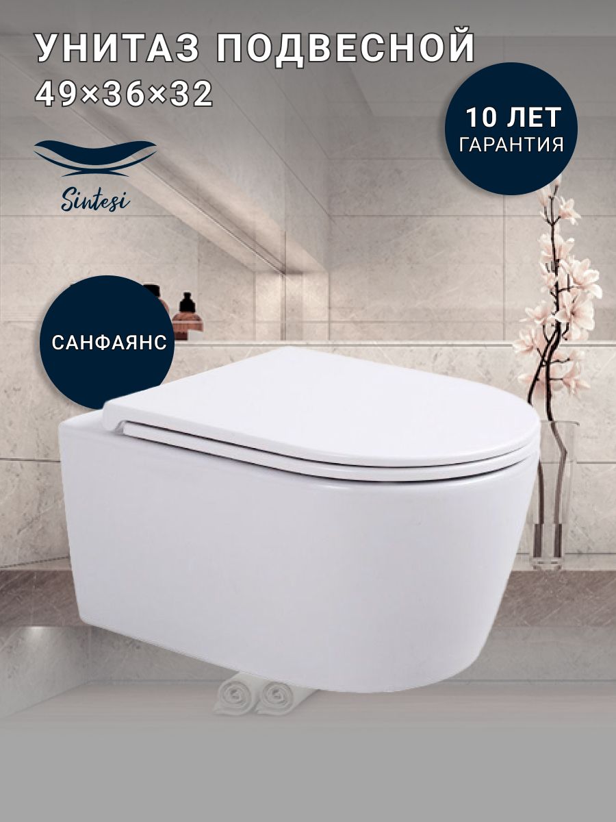 —Унитаз подвесной Sintesi SIN-TS-DNT-191 белый безободковый с сиденьем микролифт каскадный смыв