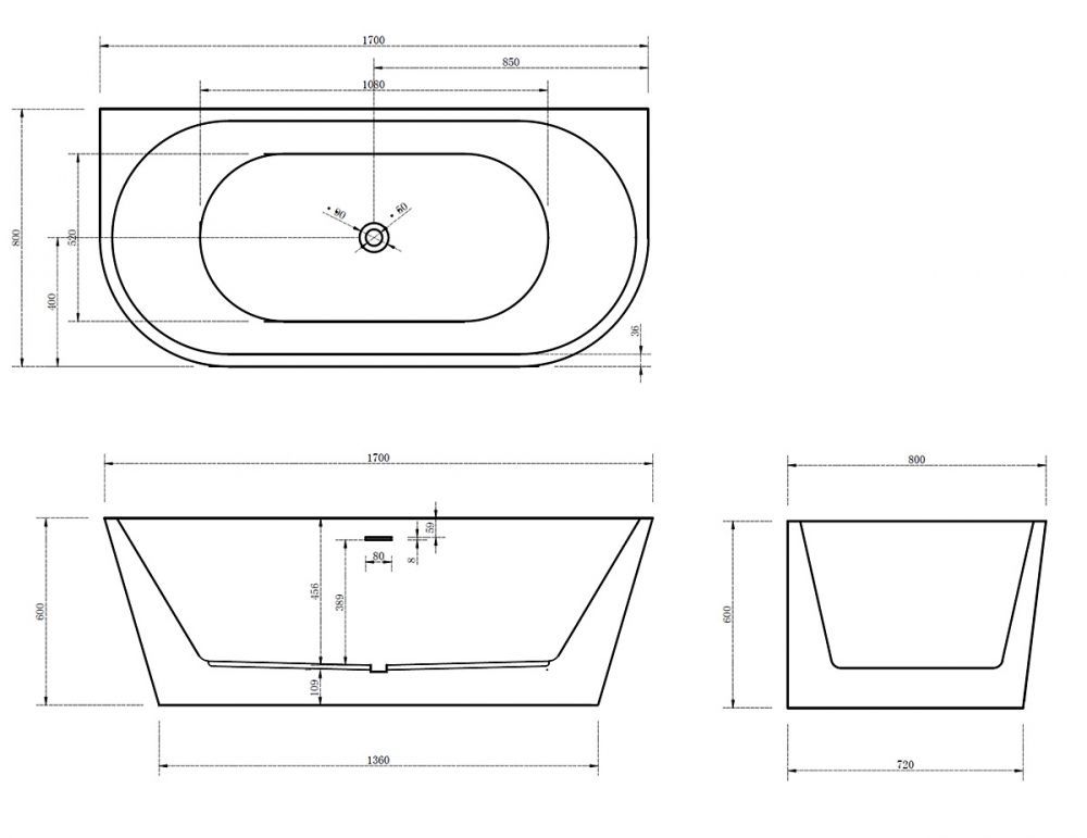 Ванна акриловая Abber AB9216-1.7R 170х80 пристенная овальная с каркасом