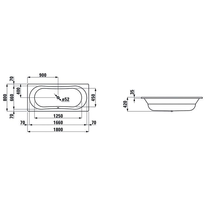 —Ванна стальная Laufen Thallium 2.2509.3.600.040.1 180х80 встраиваемая овальная без ножек
