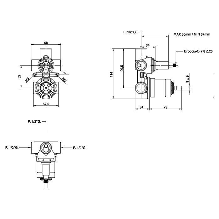 —Внутренняя часть смесителя для душа на 3 выхода Bongio T Mix 97630003