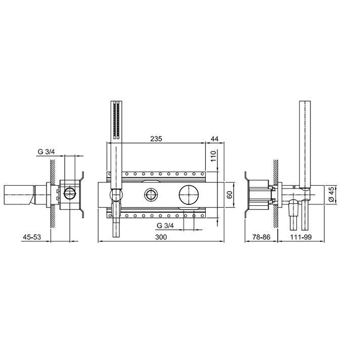 —Внутренняя часть смесителя для душа, переключатель на 2 источника Fantini Simibox 19 02 3084A
