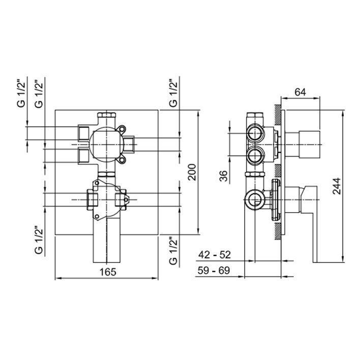 —Внутренняя часть смесителя для душа, переключатель на 3 источника Fantini AR/38 19 02 3387A