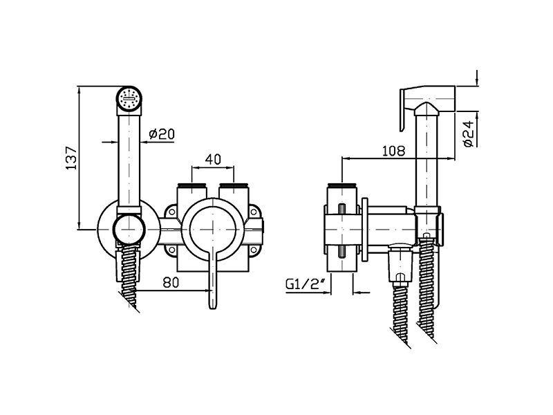 Встроенная часть для смесителя ZUCCHETTI R99815 для раковины, для гигиенического душа.