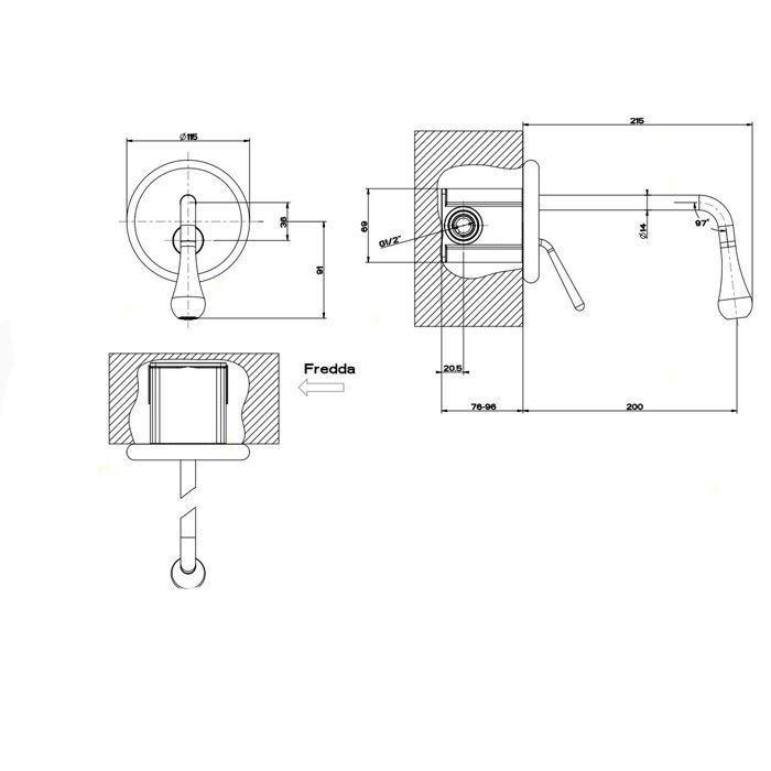 —Внутренняя часть встраиваемого однорычажного смесителя для раковины с изливом Gessi Goccia 33687#031