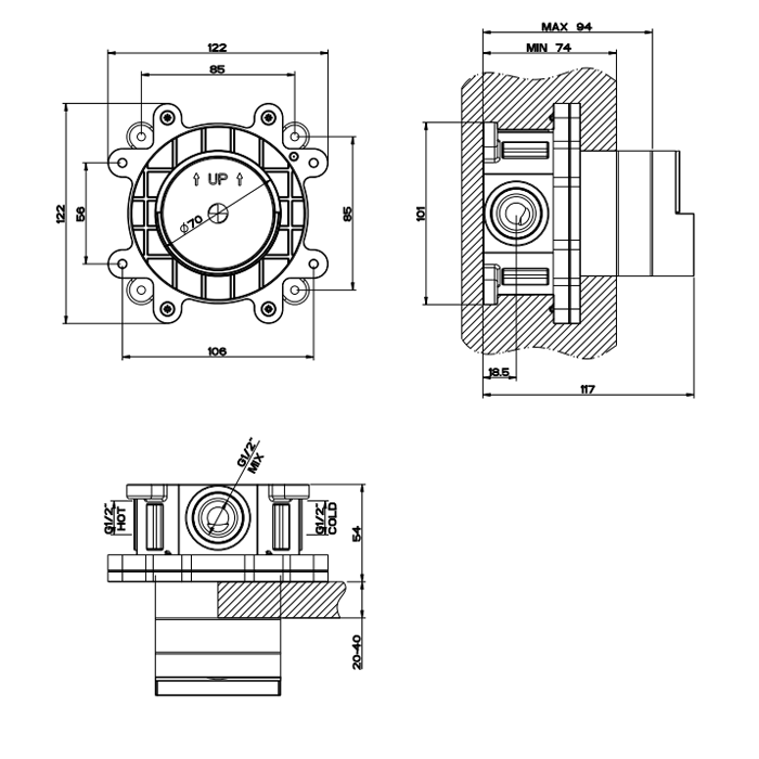 —Внутренняя часть встраиваемого однорычажного смесителя Gessi 46112#031