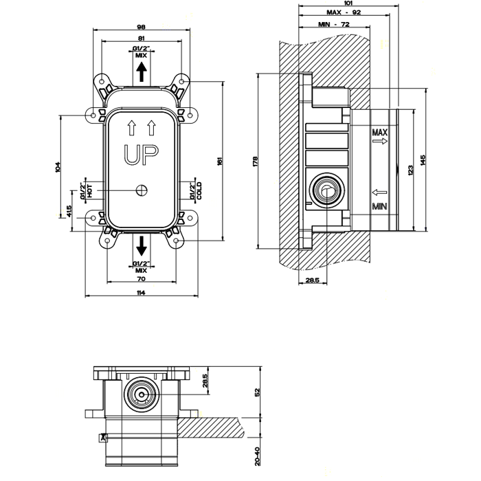 —Внутренняя часть встраиваемого однорычажного смесителя на 2 выхода Gessi Docce 44673#031