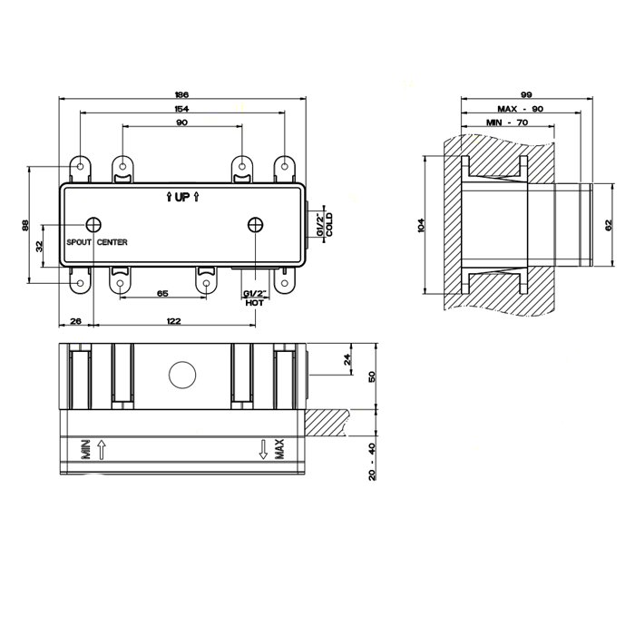 —Внутренняя часть встраиваемого однорычажного смесителя с изливом Gessi Complementi 44697#031