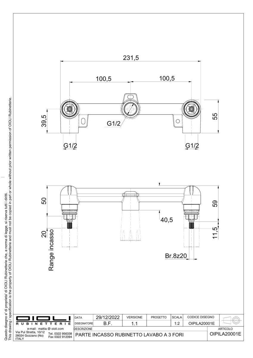 —Внутренняя часть встраиваемого смесителя Oioli Universal OIPILA20001E