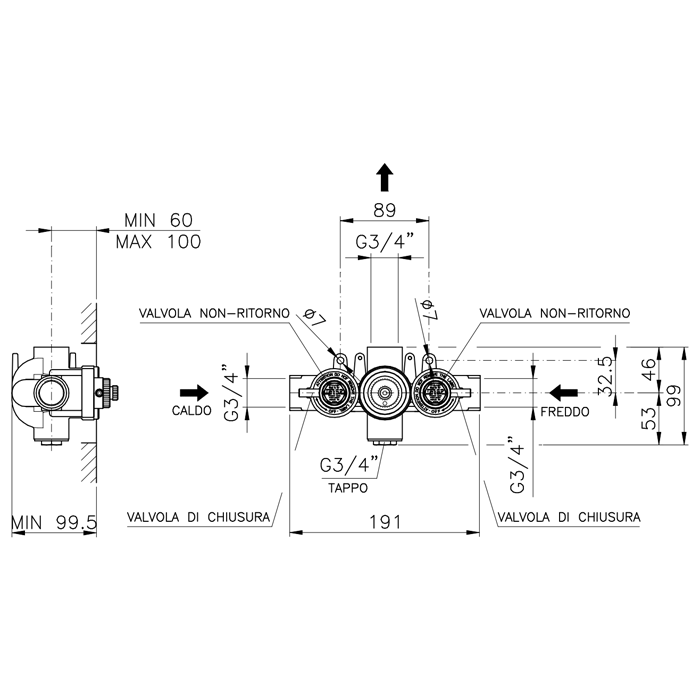 —Внутреняя часть для термостатического смесителя 3/4" без запорного вентиля Nicolazzi 4913 (новый арт C4913)