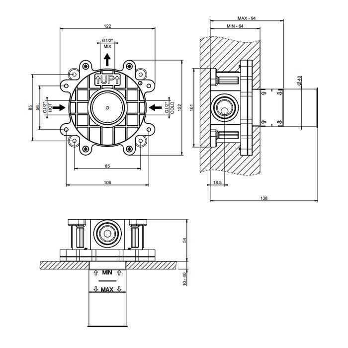 —Встраиваемая часть настенного однорычажного смесителя Gessi 63412#239
