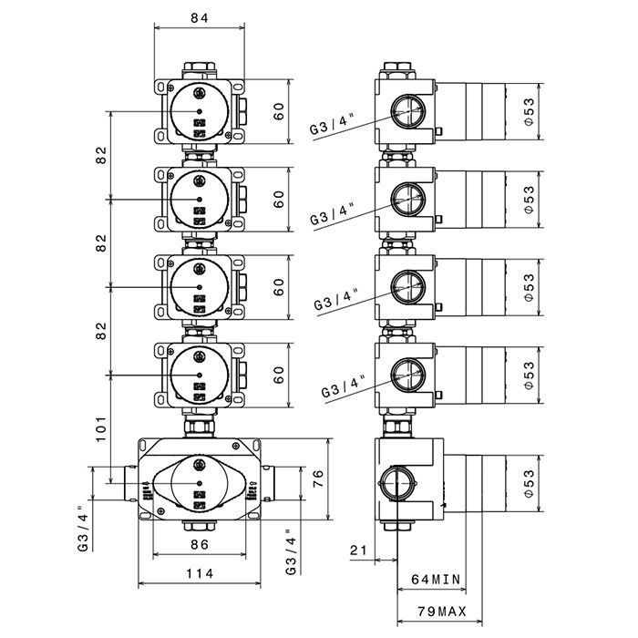 —Встраиваемая часть термостатического смесителя 3/4"на 4 источника Newform 27878.00.000