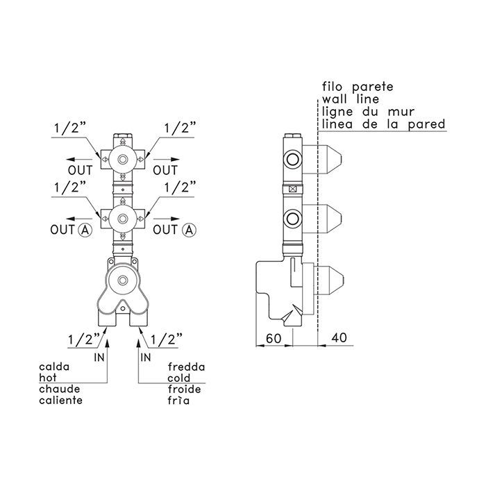 —Встраиваемая часть термостатического смесителя на 2 источника Stella UN 06004 0000