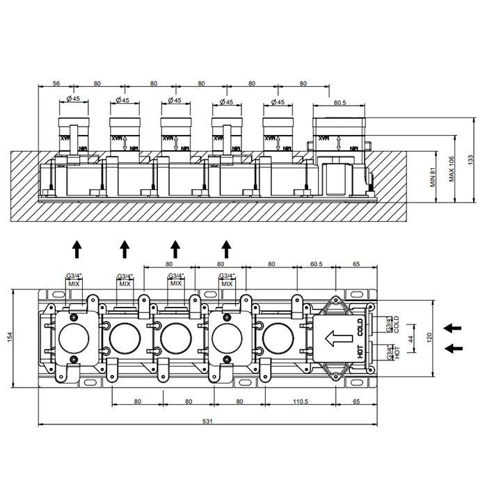 —Встраиваемые части для термостатического смесителя Gessi Hi-Fi 63015#031