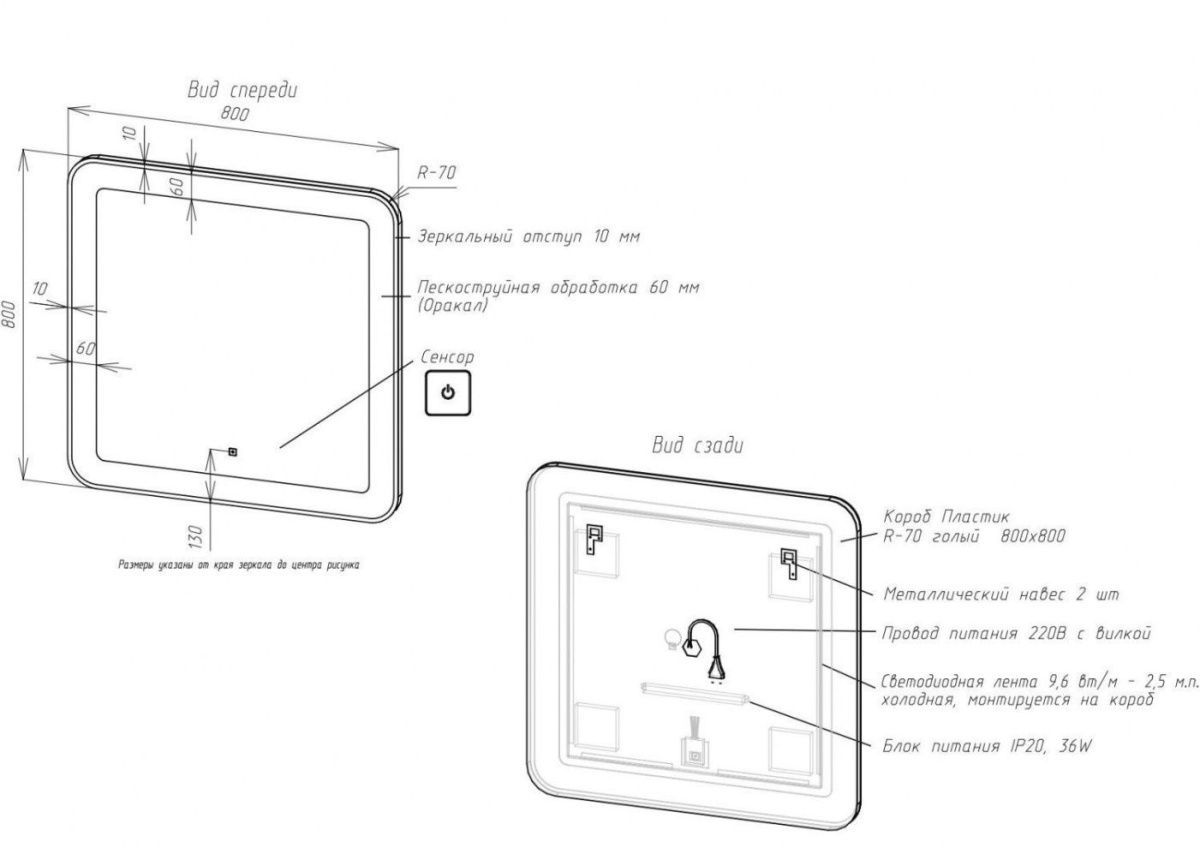 —Зеркало с подсветкой Art&Max LATINA AM-Lat-800-800-DS-F 80х80 подвесное