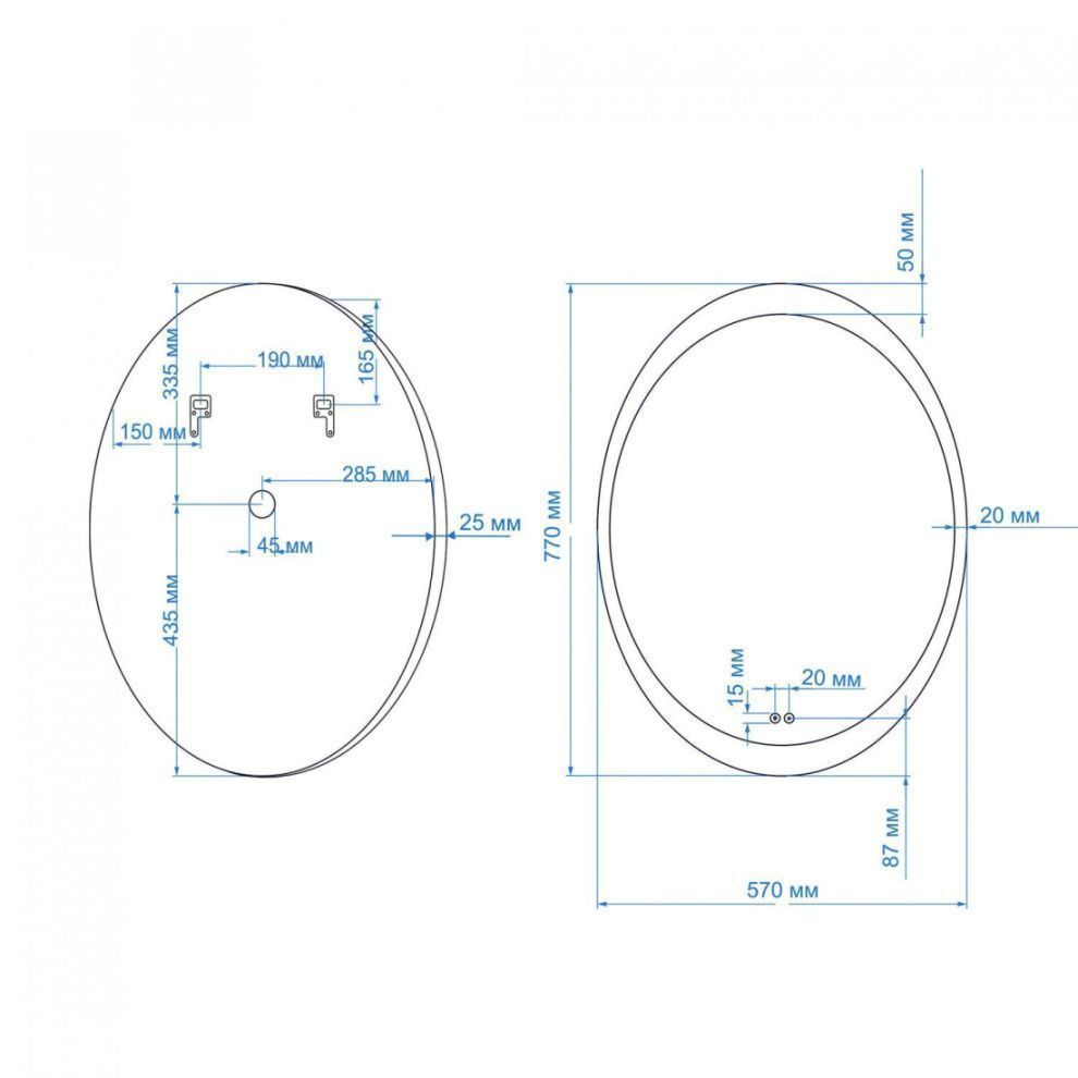 —Зеркало с подсветкой и антизапотевателем Art&Max OVALE AM-Ova-570-770-DS-F-H 60х80 подвесное