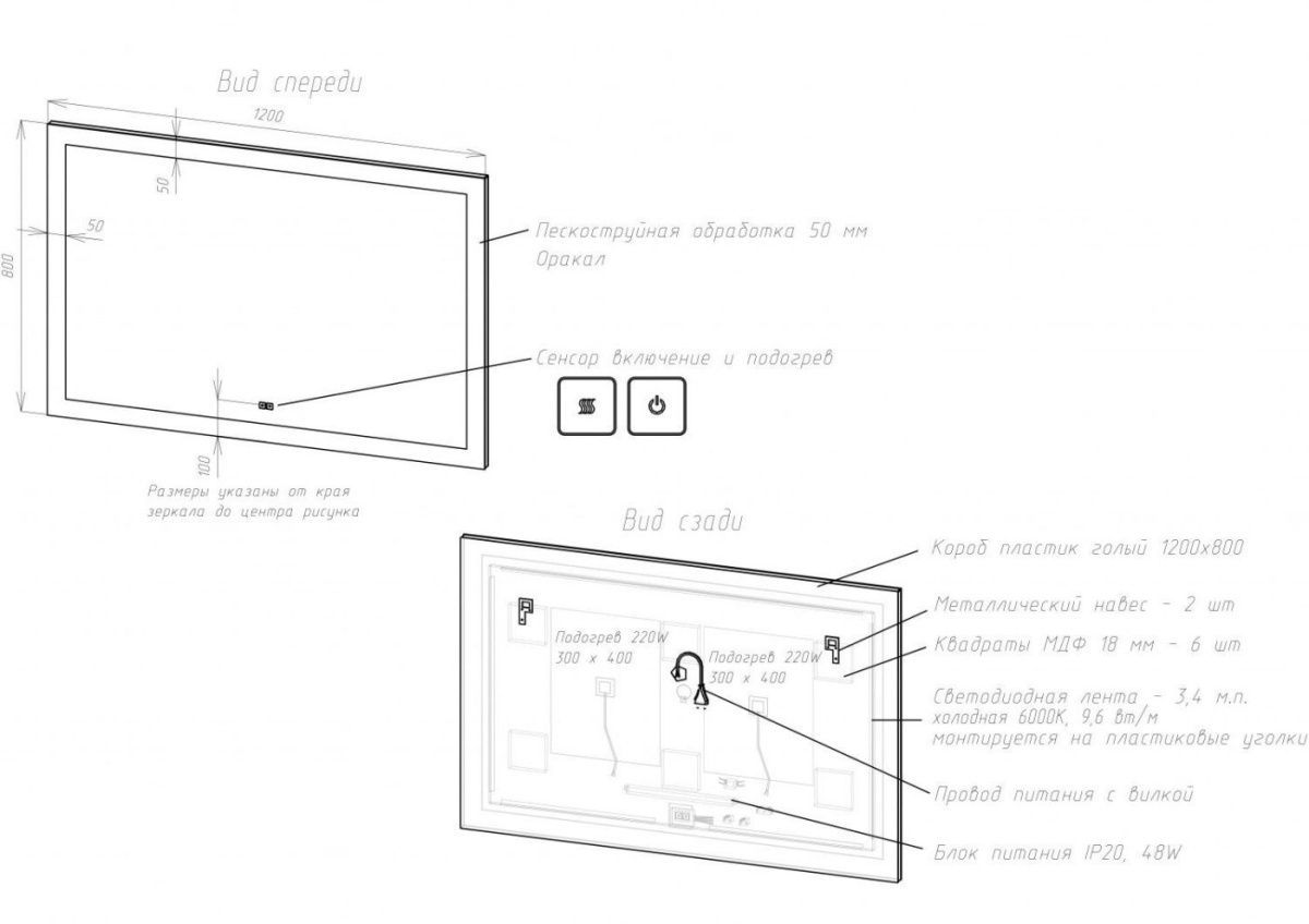 —Зеркало с подсветкой и антизапотевателем Art&Max SOLI AM-Sol-1200-800-DS-F-H 120х80 подвесное