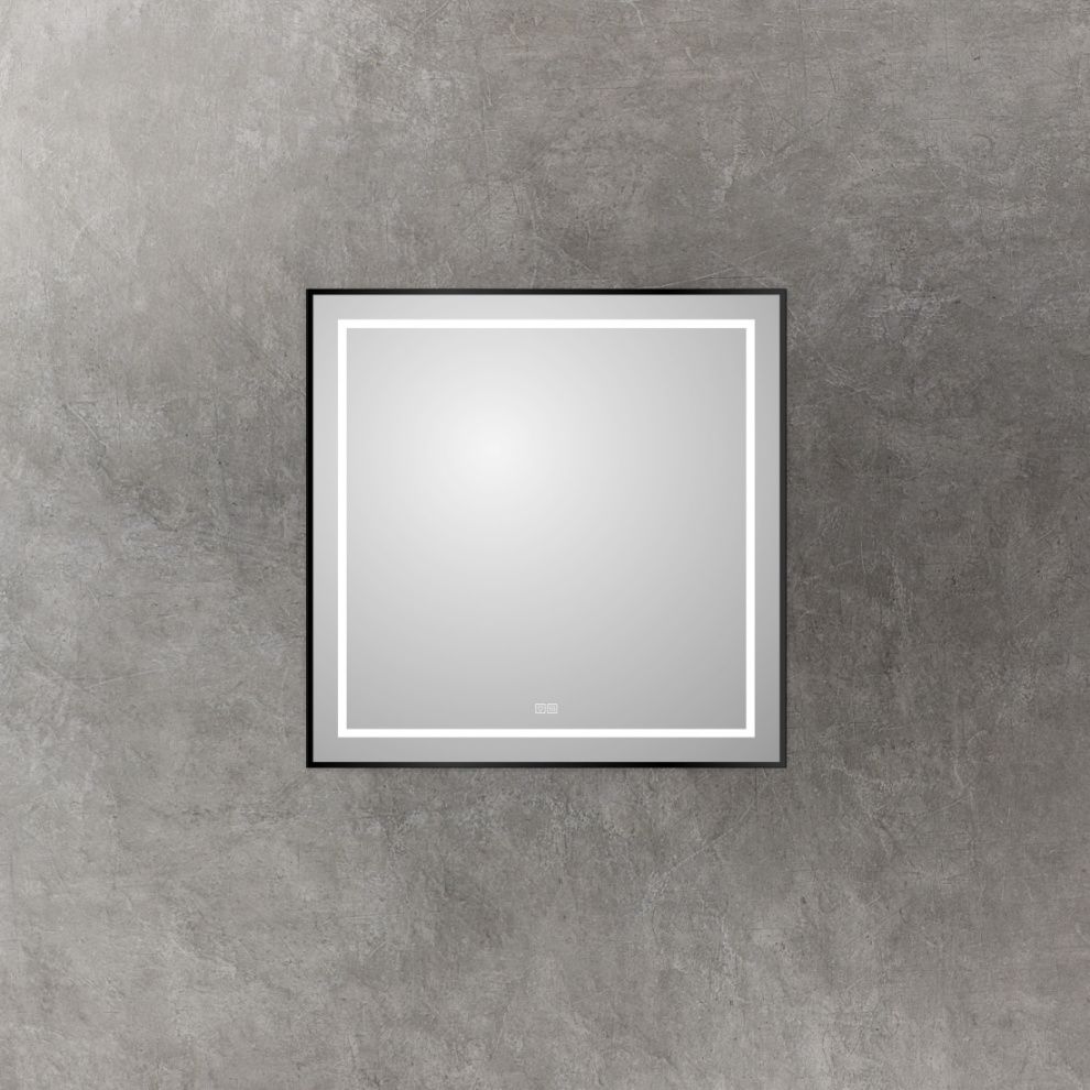 Зеркало в алюминиевой раме с встроенным светильником, сенсорным выключателем и подогревом.