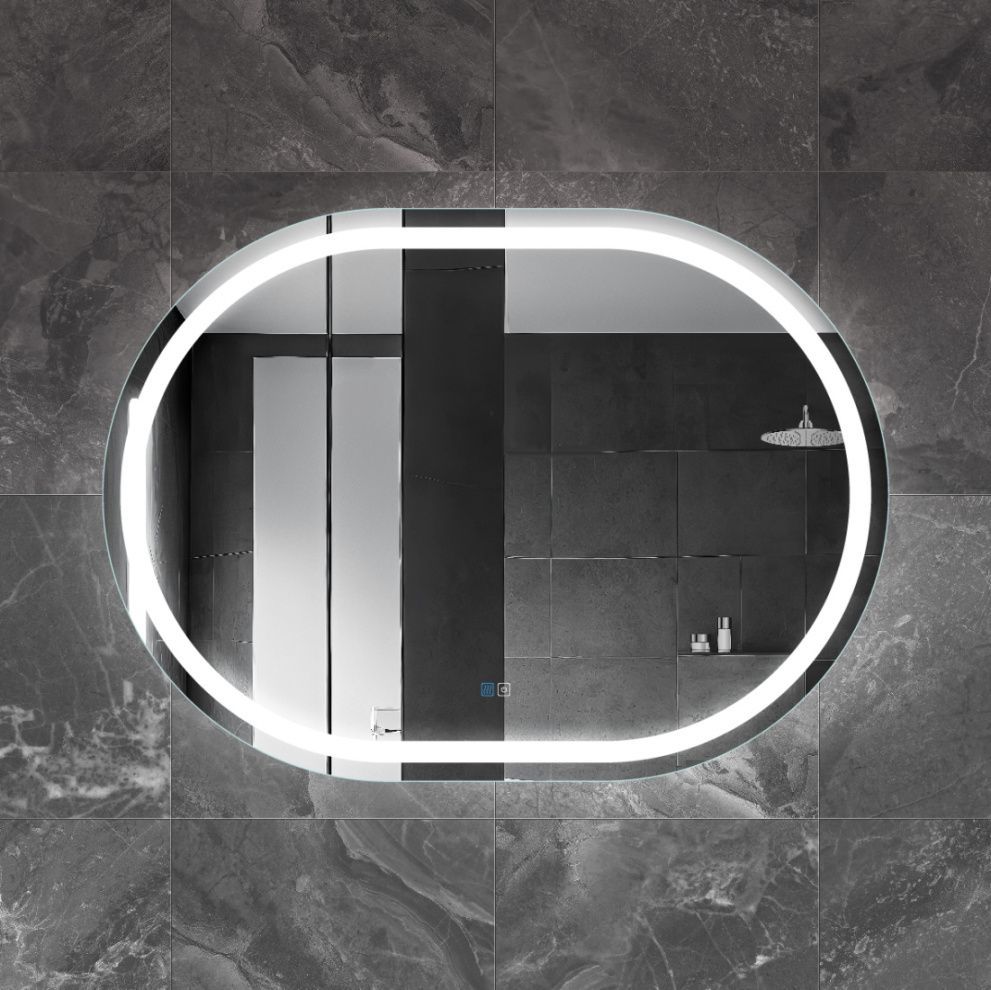 Зеркало 110x80 с контурной и направленной подсветкой, с двойными сенсорным выключателем на прикосновение и функцией подогрева. Корпус изделия выполнен из светорассеивающего пластика. Установлены 2 нагревательных мата 220*350 мм. Диммер с возможностью регулировки яркости свечения. Укомплектован светодиодной лентой SMD 3528, IP 44, 12V, 6200 К, холодный свет.  Крепеж для монтажа прилагается.