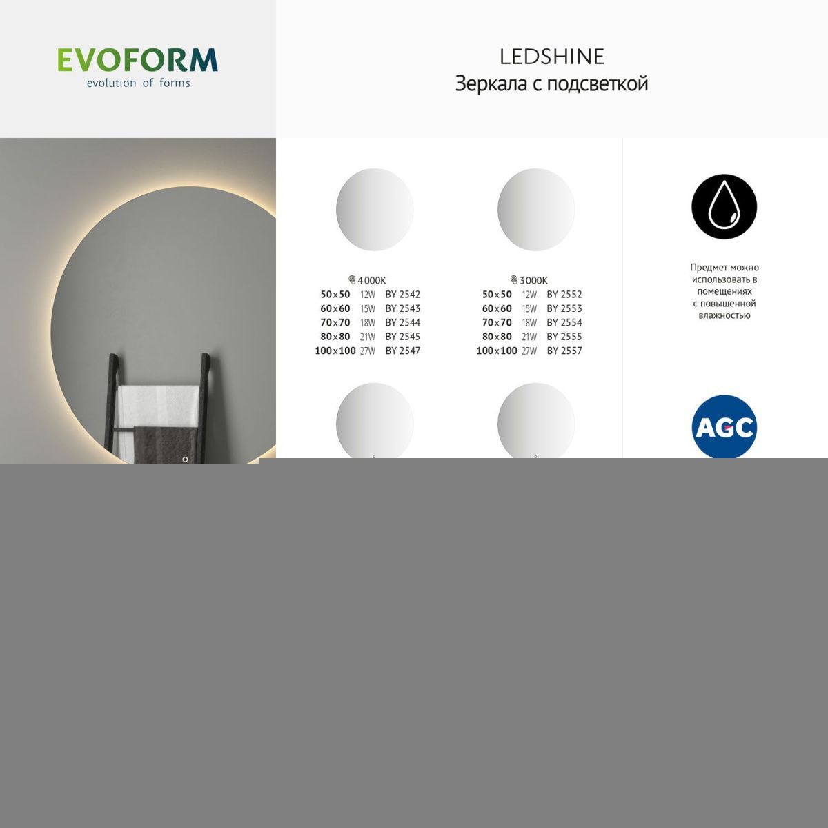 Компания ООО «САНТЕХ АЛЬЯНС» при изготовлении зеркал торговой марки «Evoform» использует серебряные зеркальные полотна мирового производителя AGC- Asahi Glass Co (Япония). AGC - первая компания, применившая новейшую технологию Mirox, которая стала мировым эталоном. Mirox New Generation Ecological - это новое поколение экологически чистых, высококачественных, стойких к воздействиям зеркал, характеристики которых превосходят требования самых строгих стандартов. ПРЕИМУЩЕСТВА: Высокие антикоррозионные свойства; Способность готового продукта противостоять химическим повреждениям; Срок полезного использования в 3 раза превышает аналогичный показатель традиционных зеркал; Повышенная стойкость к абразивным средствам очистки: в семь раз выше, чем у традиционных зеркал; Отсутствие точечной коррозии и «цветения» с течением времени; Сертификация Cradle to Cradle - безотходная система производства; Испарение летучих органических соединений и формальдегида сведено к минимуму; Устойчивы к высоким температурам при равномерном нагревании (до 80°C).  Компания располагает современным оборудованием, владеет новейшими технологиями и имеет в штате квалифицированный персонал. Высоких стандартов качества продукции предприятию удается достигнуть благодаря использованию специализированного оборудования ведущих европейских производителей и высококачественного экологически безопасного зеркального полотна. Широкий модельный ряд позволяет максимально удовлетворить самые разнообразные пожелания покупателей. ООО «САНТЕХ АЛЬЯНС» уже много лет производит и реализует зеркала для ванной комнаты, зеркала изготавливаются с соблюдением всех необходимых условий производства. По праву можно назвать наш ассортимент одним из самых больших среди европейских производителей, работающих со складским остатком.