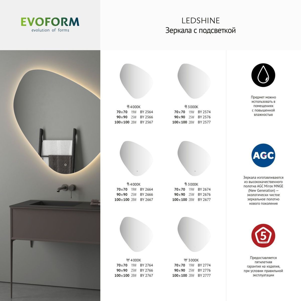 Зеркало с подсветкой Evoform Ledshine BY 2676 90х90 подвесное