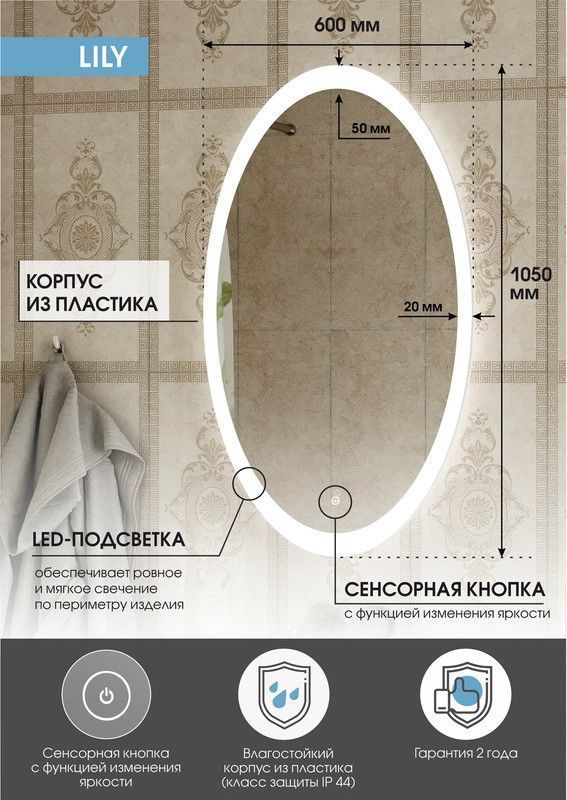 —Зеркало Continent Lily ЗЛП494 60х110 подвесное