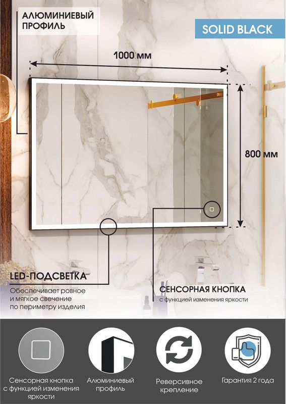Зеркало Continent Solid Black ЗЛП1607 100х80 подвесное