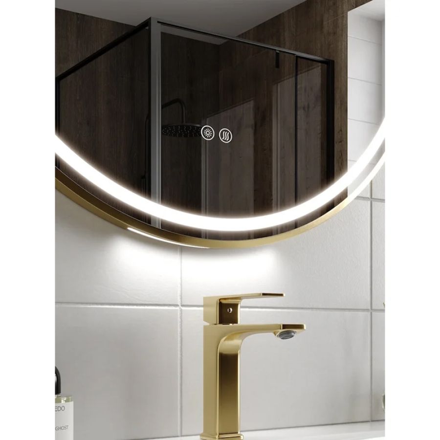 Зеркало Maretti Elena EA1480R21EL 80x80 см с LED подсветкой, сенсорным управлением и функцией антипар – это идеальное решение для вашей ванной комнаты. Модель Elena EA1480R21EL с элегантным золотым обрамлением и диаметром 80 см, станет идеальным украшением в интерьере вашей ванной комнаты. Роскошная и приятная на ощупь поверхность рамы, выполнена из анодированного алюминия толщиной 1 мм, устойчивого к влаге и коррозии. Основное преимущество этого зеркала – встроенная светодиодная лента, обеспечивающая яркое и равномерное освещение, за счет использования светодиодов SMD 2835 со сроком службы более 50000 часов. Смена цветовой температуры в диапазоне от 2700K до 6500K создает комфортные условия для любого времени суток. Водонепроницаемый и огнестойкий светодиодный драйвер и надёжный блок питания LETARON гарантирует долговечность и безопасность эксплуатации. Сенсорный переключатель обеспечивает простоту и удобство управления, а также долговечность – более 300 000 нажатий, что эквивалентно примерно 10 годам службы. Функция антизапотевания (площадью 30х20 см) предотвращает образование конденсата на поверхности зеркала, что особенно удобно после принятия душа или ванны.