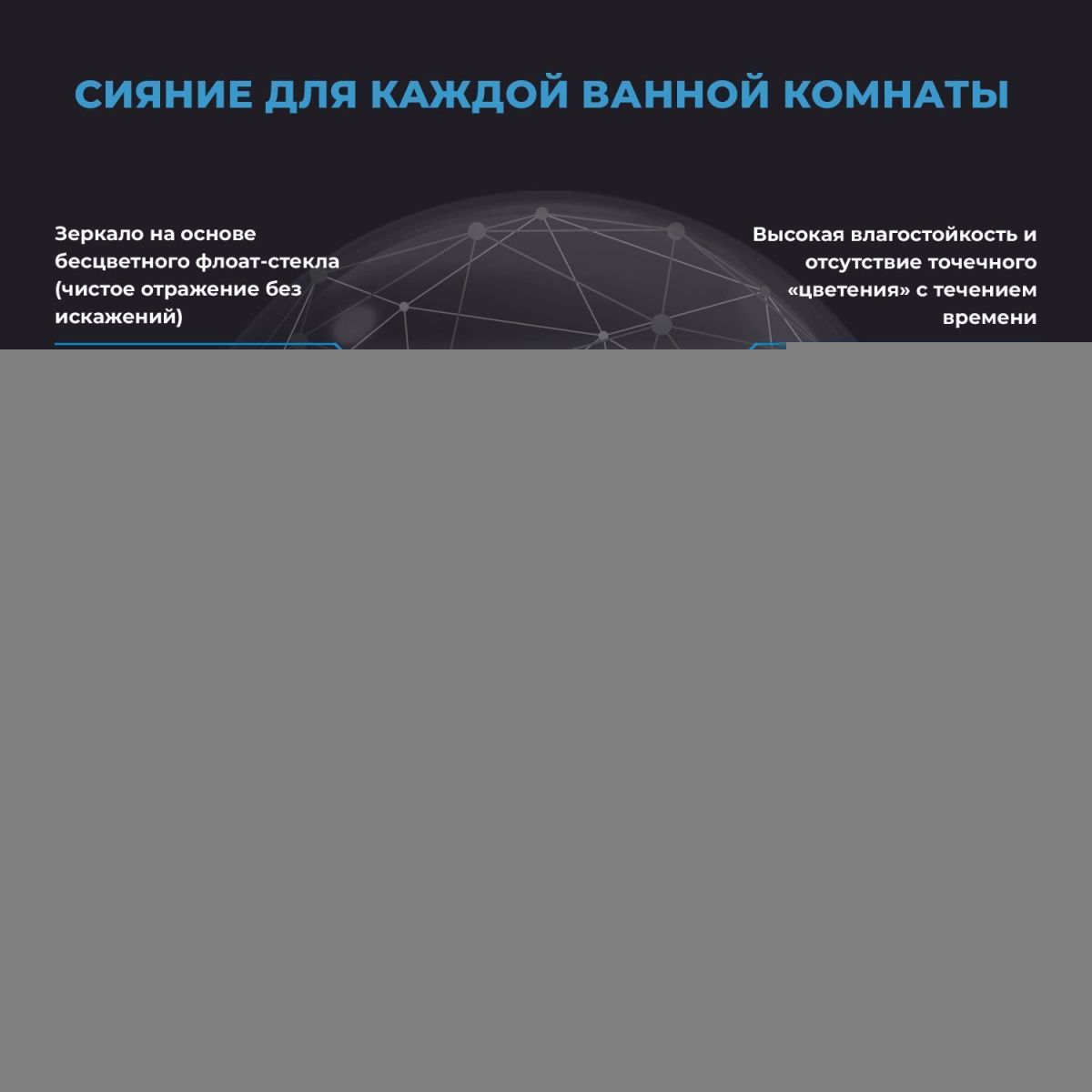 Безупречное японское стекло — результат непрерывного развития технологий, оно соответствует единой системе защиты от коррозии и отсутствию точечного «цветения» с течением времени. Зеркало с интерьерной подсветкой – простое и удобное решение, которое создает расслабляющую атмосферу в ванной комнате. Плотный поток света от LED-ленты, установленной с обратной стороны полотна, создает равномерный ореол идеальной формы и подчеркивает достоинства умывальной зоны.
