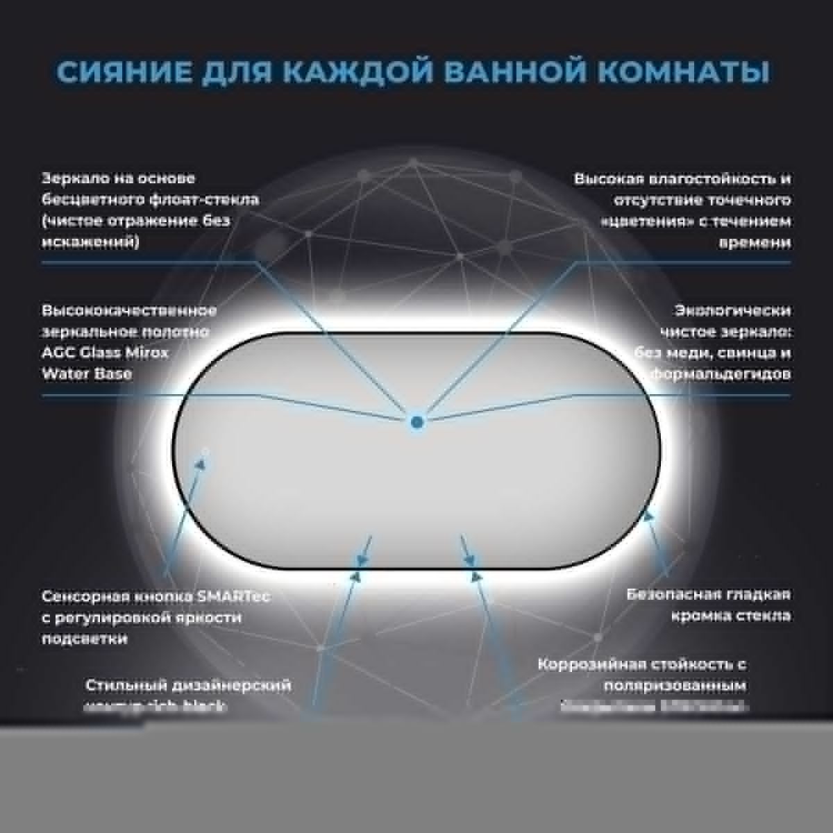 Безупречное японское стекло — результат непрерывного развития технологий, оно соответствует единой системе защиты от коррозии и отсутствию точечного «цветения» с течением времени. Зеркало с интерьерной подсветкой – простое и удобное решение, которое создает расслабляющую атмосферу в ванной комнате. Плотный поток света от LED-ленты, установленной с обратной стороны полотна, создает равномерный ореол идеальной формы и подчеркивает достоинства умывальной зоны.