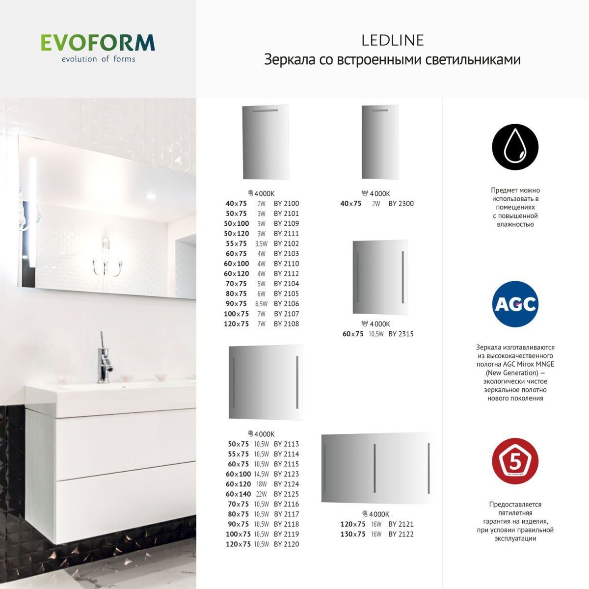 —Зеркало с подсветкой Evoform Ledline BY 2122 130х80 подвесное