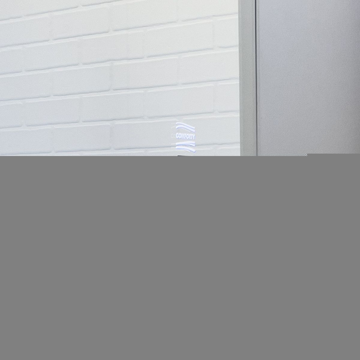 Высококачественное зеркальное полотно с амальгамой на основе серебра. Зеркало оборудовано ореольной и фронтальной Led подсветкой с бесконтактным включателем со встроенной функцией регулировки яркости. Температура подсветки: 6000-6500К холодная.