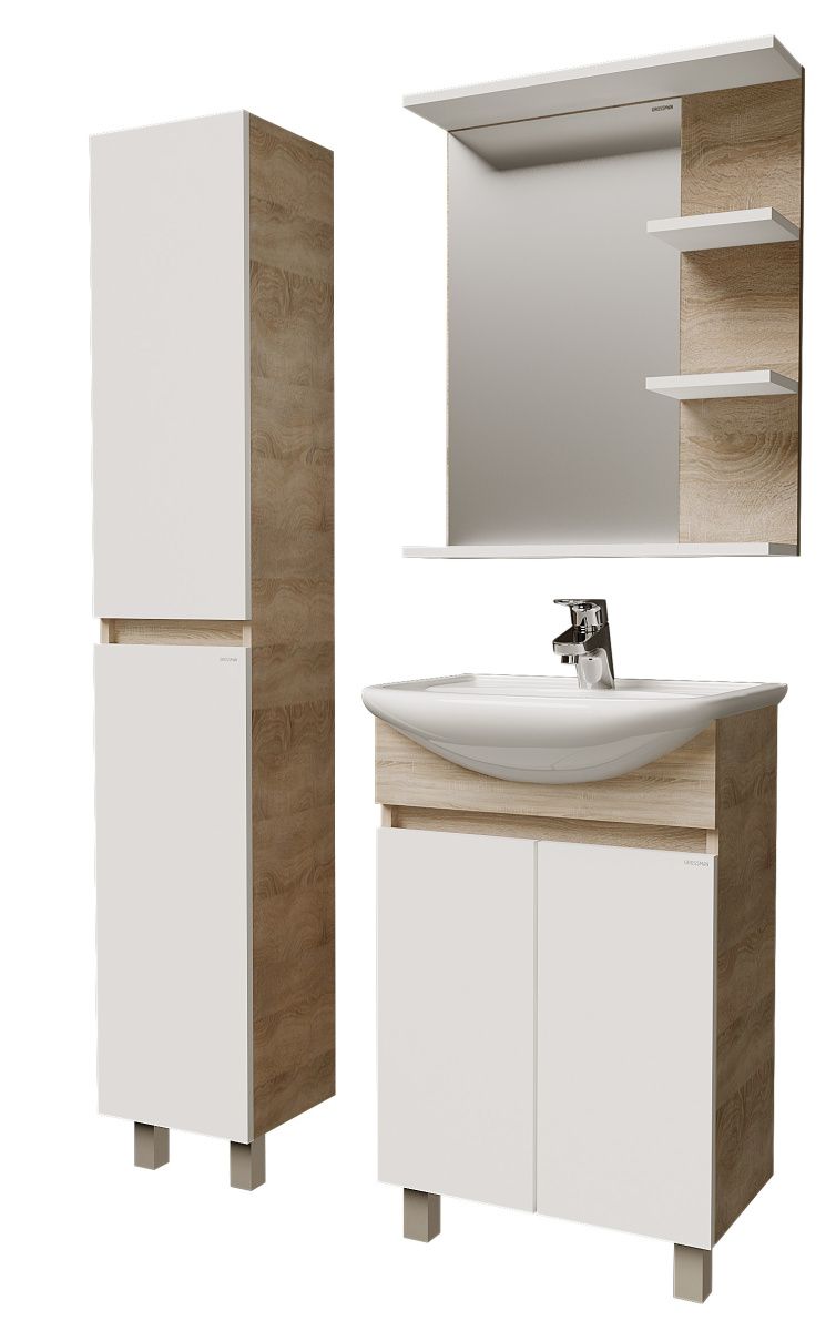 Компактные габариты позволяют грамотно организовать небольшой санузел, а сочетание структуры натурального дерева с белой глянцевой отделкой гармонично впишется в интерьер любой ванной комнаты.