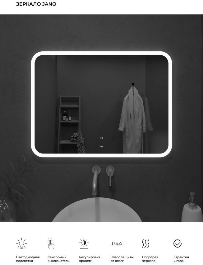 Зеркало также оснащено подогревом, что предотвращает запотевание зеркальной поверхности, обеспечивая вам идеальное и четкое отражение в любых условиях. Удобство использования дополняется легкостью монтажа, благодаря чему вы сможете установить его самостоятельно без лишних усилий.